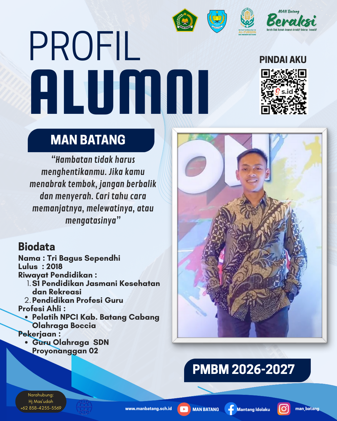 PPDB MAN Batang dibuka setiap awal semester genap. Informasi resmi melalui website dan media sosial madrasah.